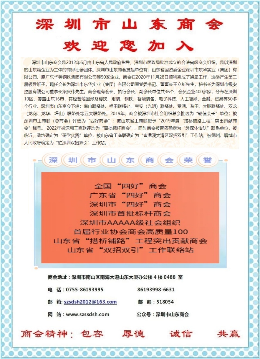 聯(lián)系人:深圳市山東商會秘書處