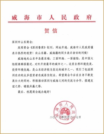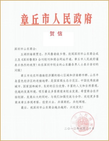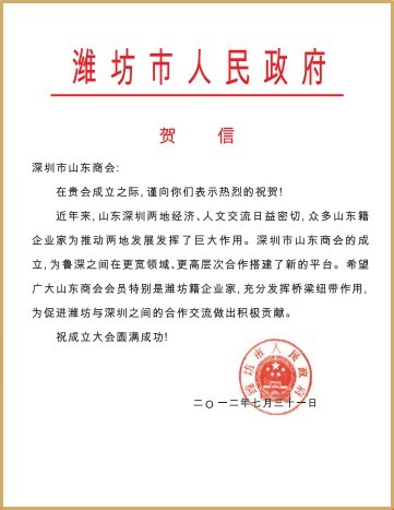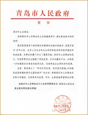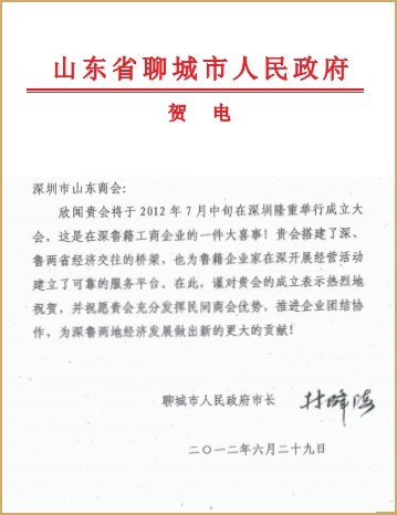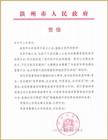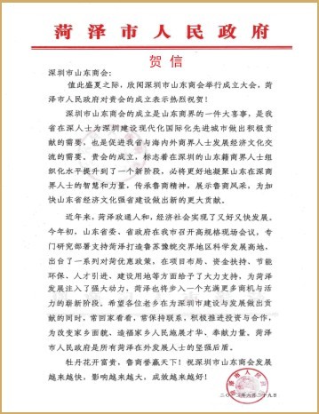 濱州市人民政府賀信 菏澤市人民政府賀信