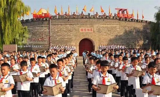 上午九時,萬仞宮墻前,大中小學生、企業(yè)職工等各界群眾共2568人齊聲誦讀《論語》經(jīng)典語句。
