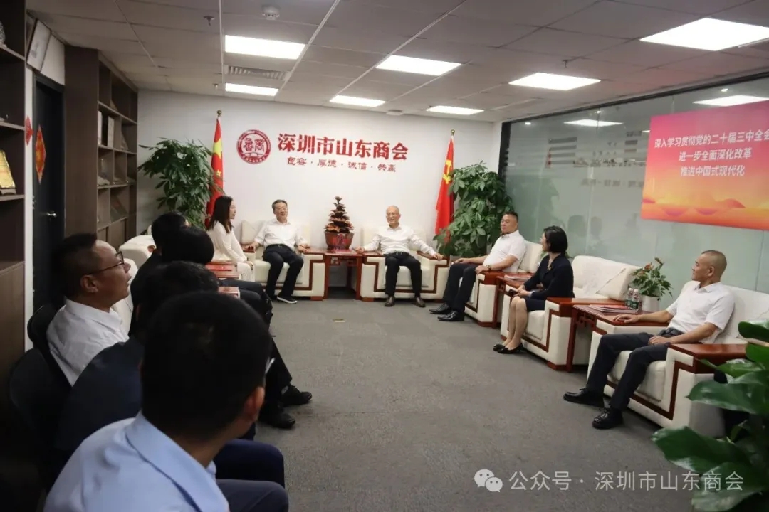 2025年6月19日,山東省委統(tǒng)戰(zhàn)部副部長、省工商聯(lián)黨組書記張鯤,山東省總商會副會長、省青年企業(yè)家聯(lián)合會副會長、山東堯王控股集團總裁宗劍飛,山東省青年企業(yè)家聯(lián)合會副會長兼秘書長、山東東明石化集團總裁李治,山東省青年企業(yè)家聯(lián)合會副會長、山東恒信集團總經(jīng)理司傳煜,山東省工商聯(lián)組織建設(shè)處副處長趙喆等一行蒞臨我會開展調(diào)研與交流活動,圍繞服務(wù)民營經(jīng)濟高質(zhì)量發(fā)展、深化政企溝通機制、推動“雙招雙引”等議題展開深入探討。我會會長王立新,執(zhí)行會長孫永亮,執(zhí)行會長兼秘書長梁慶偉,深圳市東華實業(yè)(集團)有限公司黨委委員、副總經(jīng)理楊吉平,我會副會長朱禮貴、吳軍、陳靜,理事李建海、杜江濤,執(zhí)行秘書長兼辦公室主任陳振永,黨委辦公室主任、副秘書長張含增及秘書處人員等熱情接待,并做交流匯報。