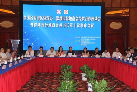 2014年9月25日下午,“深圳市異地商會(huì)秘書(shū)長(zhǎng)第十次聯(lián)席會(huì)議暨全國(guó)各省市區(qū)人民政府駐深圳辦事處聯(lián)合會(huì)、深圳市異地商會(huì)秘書(shū)長(zhǎng)聯(lián)席會(huì)議經(jīng)貿(mào)合作座談會(huì)”在深圳圣廷苑酒店召開(kāi)。榮譽(yù)會(huì)長(zhǎng)劉恒昌、秘書(shū)長(zhǎng)伍柳江與來(lái)自湖南、河北、云南、山西、福建、黑龍江、貴州、內(nèi)蒙古、上海、重慶等50余位全國(guó)各省市政府駐深圳(廣東)辦事處主任,以及來(lái)自深圳市福建、四川、天津、黑龍江、汕頭商會(huì)等的50余位深圳市異地商會(huì)秘書(shū)長(zhǎng)出席。