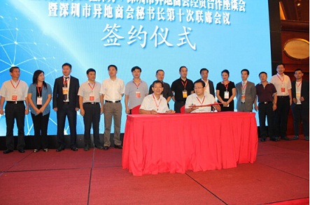 駐深辦聯(lián)合會(huì)會(huì)長(zhǎng)彭國(guó)湘致辭,秘書(shū)長(zhǎng)伍柳江代表發(fā)起商會(huì)簡(jiǎn)要介紹了深圳市異地商會(huì)秘書(shū)長(zhǎng)聯(lián)席會(huì)的情況。座談會(huì)上,討論了全國(guó)各省市區(qū)駐深辦與深圳市異地商會(huì)間如何加強(qiáng)經(jīng)貿(mào)合作、兩平臺(tái)間如何深度合作大力為會(huì)員單位服務(wù)等議題。隨后,地商會(huì)聯(lián)席會(huì)代表、深圳市福建商會(huì)執(zhí)行秘書(shū)長(zhǎng)陳加明與駐深辦聯(lián)合會(huì)秘書(shū)長(zhǎng)張希波分別代表主辦雙方簽訂《戰(zhàn)略合作框架協(xié)議》。