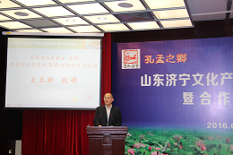 他在致辭中說濟(jì)寧是孔孟之鄉(xiāng),禮儀之邦,著名的旅游勝地,是中國儒教文化的發(fā)祥地,人杰地靈,文化璀璨。濟(jì)寧地理位置優(yōu)越,交通通訊便利,既是一座歷史悠久的文化、商業(yè)名城,又是蓬勃發(fā)展中的現(xiàn)代工業(yè)城市。近年來,在濟(jì)寧各級領(lǐng)導(dǎo)的帶領(lǐng)下,濟(jì)寧的經(jīng)濟(jì)轉(zhuǎn)型和對外合作都走在了山東的前列,許多科研院所和高科技企業(yè)陸續(xù)落戶濟(jì)寧,一方面是受到了優(yōu)秀的投資環(huán)境和優(yōu)越的投資政策的吸引;另一方面,也是濟(jì)寧厚重的儒家人文環(huán)境使企業(yè)家們愛上這片熱土。