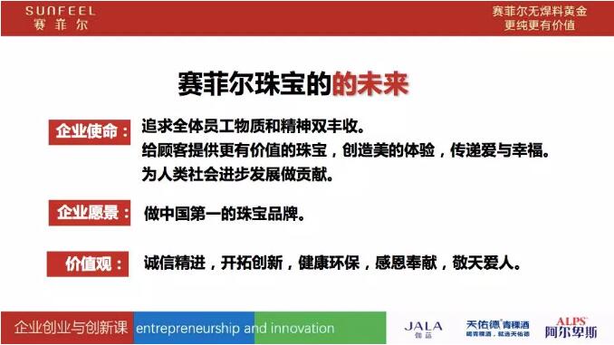 王義善:因為我們最開始是在山東做藍(lán)寶石生意,而藍(lán)寶石的英文是Sapphire,我們將它音譯為賽菲爾Sunfeel,更加時尚好聽,同時這個英文名也給人一種太陽慢慢升起,充滿陽光的感覺。