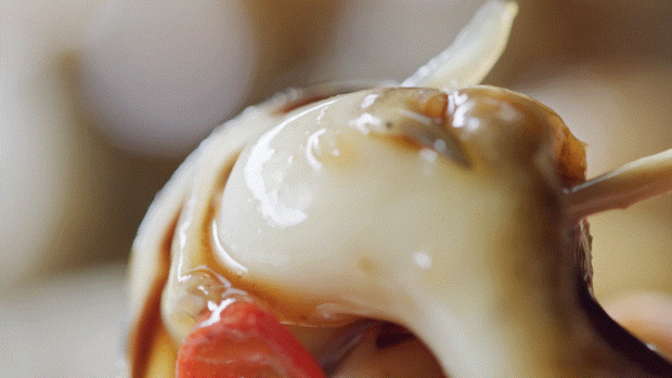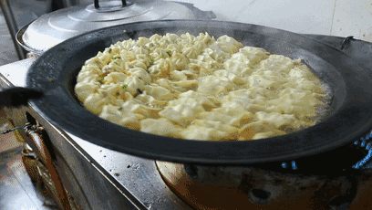 一碗鲅魚(yú)餃子、墨魚(yú)餃子、黃魚(yú)餃子,可以從一口一個(gè)到一只有手掌大小,展示山東餃子的七十二變。輕輕松松,蕩開(kāi)鮮味的漣漪,游入山東游子的思鄉(xiāng)胃;