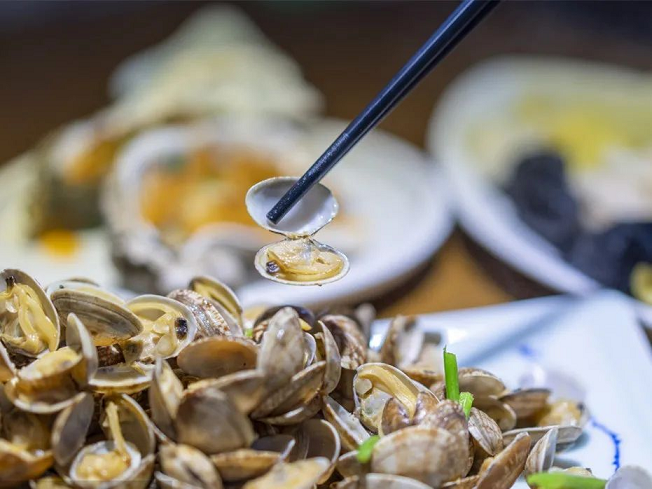 滋滋作響的乳山生蠔、充滿(mǎn)蒜香的威海扇貝……各色海味螺蟶一一排開(kāi),蝦兵蟹將個(gè)個(gè)上場(chǎng)。
