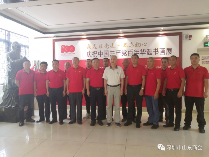 為慶祝中國(guó)共產(chǎn)黨成立100周年,深入學(xué)習(xí)貫徹習(xí)近平總書記在慶祝中國(guó)共產(chǎn)黨成立100周年大會(huì)上的重要講話精神,進(jìn)一步推進(jìn)黨史學(xué)習(xí)教育,扎實(shí)落實(shí)習(xí)近平總書記“學(xué)黨史、務(wù)思想、辦實(shí)事、開新局”的重要指示精神,2021年7月2日,深圳市山東商會(huì)深平一支部、深平二支部全體黨員,前往深圳市齊魯書畫院參觀學(xué)習(xí)由深圳市山東商會(huì)黨委、深圳市齊魯書畫院聯(lián)合舉辦的“永遠(yuǎn)跟黨走,不忘初心”慶祝中國(guó)共產(chǎn)黨百年華誕書畫展。