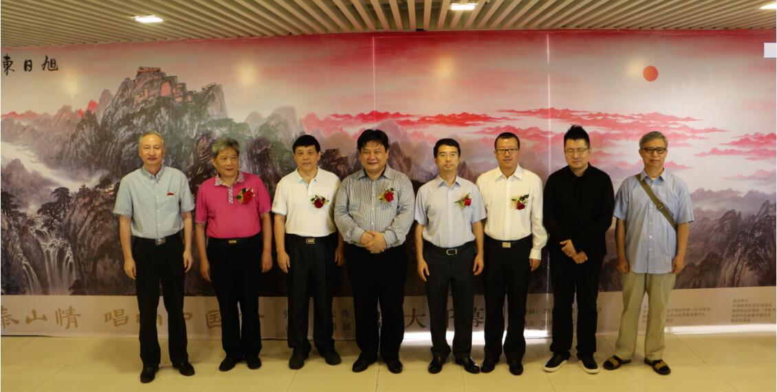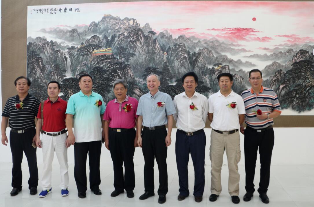 參會嘉賓在《旭日東升》巨幅作品前合影