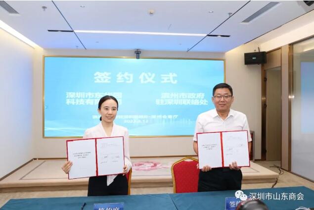活動(dòng)最后,濱州市政府駐深圳聯(lián)絡(luò)處與山東大學(xué)深圳研究院副院長王飛虎,博士科技副總裁、博士創(chuàng)新(深圳)科技服務(wù)有限公司總經(jīng)理張雄建,深圳東華集團(tuán)黨委委員、副總經(jīng)理付曉簽訂人才合作戰(zhàn)略合作協(xié)議。