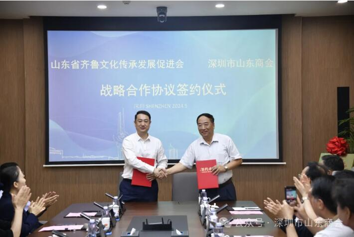 簽約儀式在莊重而熱烈的氛圍中舉行。我會執(zhí)行會長劉立基代表山東商會與文促會常務(wù)副會長鞠洪侖共同簽署了《山東省齊魯文化傳承發(fā)展促進會與深圳市山東商會戰(zhàn)略合作協(xié)議》。此次合作:一是加強對齊魯優(yōu)秀傳統(tǒng)文化的研究、闡發(fā)、教育普及和保護傳承,打造傳統(tǒng)文化創(chuàng)新平臺,汲取優(yōu)秀傳統(tǒng)文化智慧,拓展齊魯文化研究領(lǐng)域,推進齊魯文化創(chuàng)造性轉(zhuǎn)化、創(chuàng)新性發(fā)展。二是持續(xù)推動山東和粵港澳大灣區(qū)各領(lǐng)域人文交流合作,探索建立粵港澳大灣區(qū)齊魯文化教育實踐基地,搭建學(xué)習(xí)交流平臺,擴大齊魯文化在粵港澳大灣區(qū)影響力,形成全覆蓋、多層次、多面向的新格局,推進山東經(jīng)濟文化強省建設(shè)。三是共同開發(fā)、整合資源,建立人才引育、雙招雙引、產(chǎn)學(xué)研協(xié)同創(chuàng)新等方面的高效合作機制,進一步加強山東與粵港澳大灣區(qū)科技、經(jīng)濟、人才、文化等資源的交流與對接,推動“文化+產(chǎn)業(yè)+人才”深度融合,賦能山東省高質(zhì)量雙招雙引和經(jīng)濟社會高質(zhì)量發(fā)展。這一重要時刻不僅標志著兩會在文化傳承與發(fā)展領(lǐng)域的深度合作正式開啟,也預(yù)示著齊魯文化將在粵港澳大灣區(qū)煥發(fā)新的生機與活力。