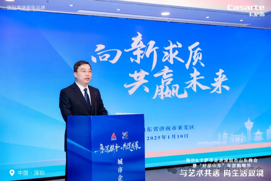 1月10日上午,由山東省工商聯(lián)、省農(nóng)業(yè)農(nóng)村廳、省國資委指導(dǎo),深圳市山東商會和深圳東華聯(lián)合主辦的2025魯深資源對接會在深圳東華假日酒店成功召開,會上,山東有關(guān)地市、知名企業(yè)做了推介,粵港澳大灣區(qū)“好品山東”聯(lián)合推廣中心正式揭牌。