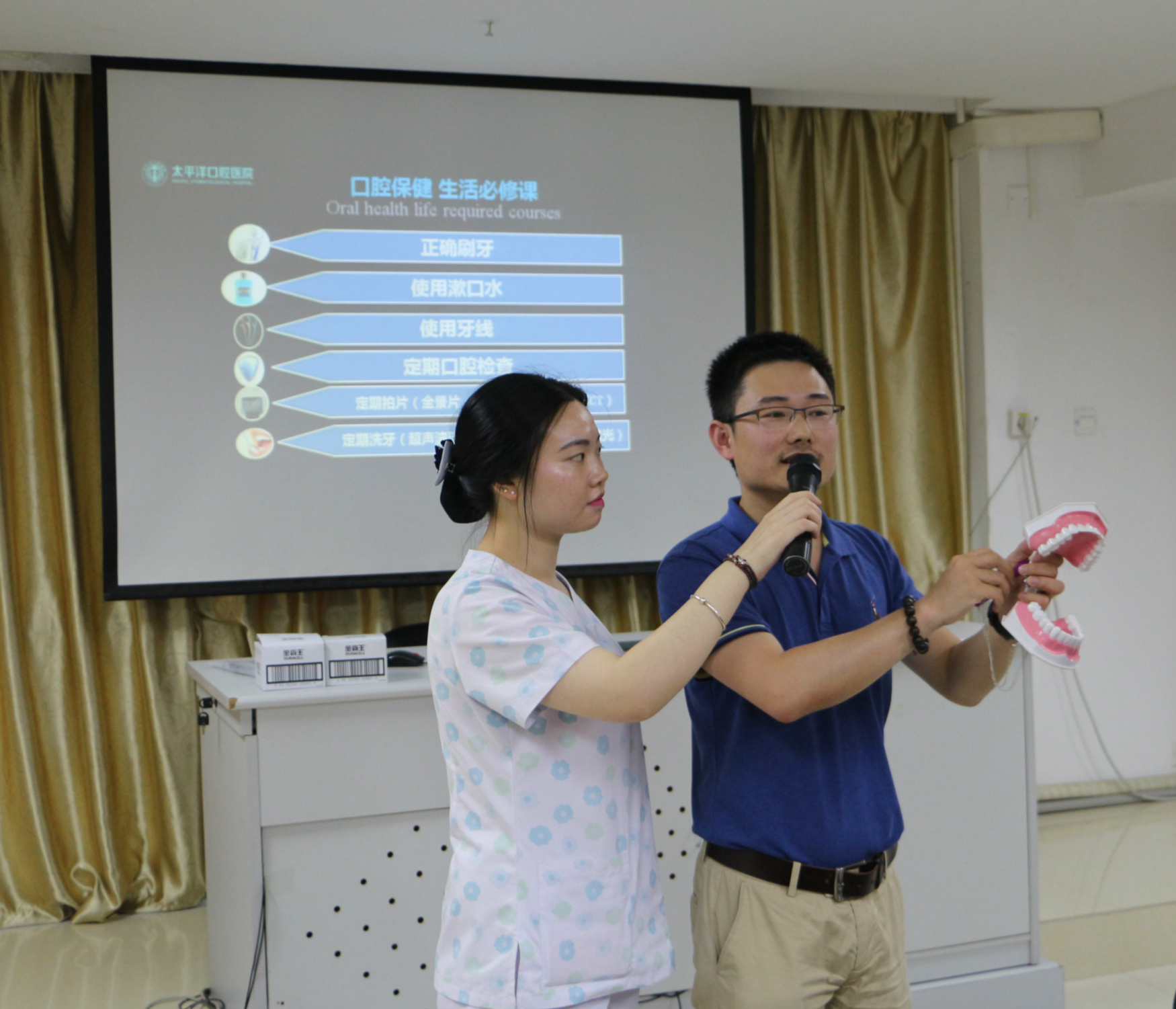 隨后,參加活動的各位同仁,分別就個人企業(yè)的情況以及感興趣的資源對接,展開了熱烈的討論和交流。期間,深圳太平洋口腔醫(yī)院孔子任副主任為大家上了一堂有趣而生動的“口腔保健知識課”,得到了大家熱烈的反映和積極的回響。之后大家在交流中心合影留念并在職工餐廳進(jìn)行了聯(lián)誼晚宴。