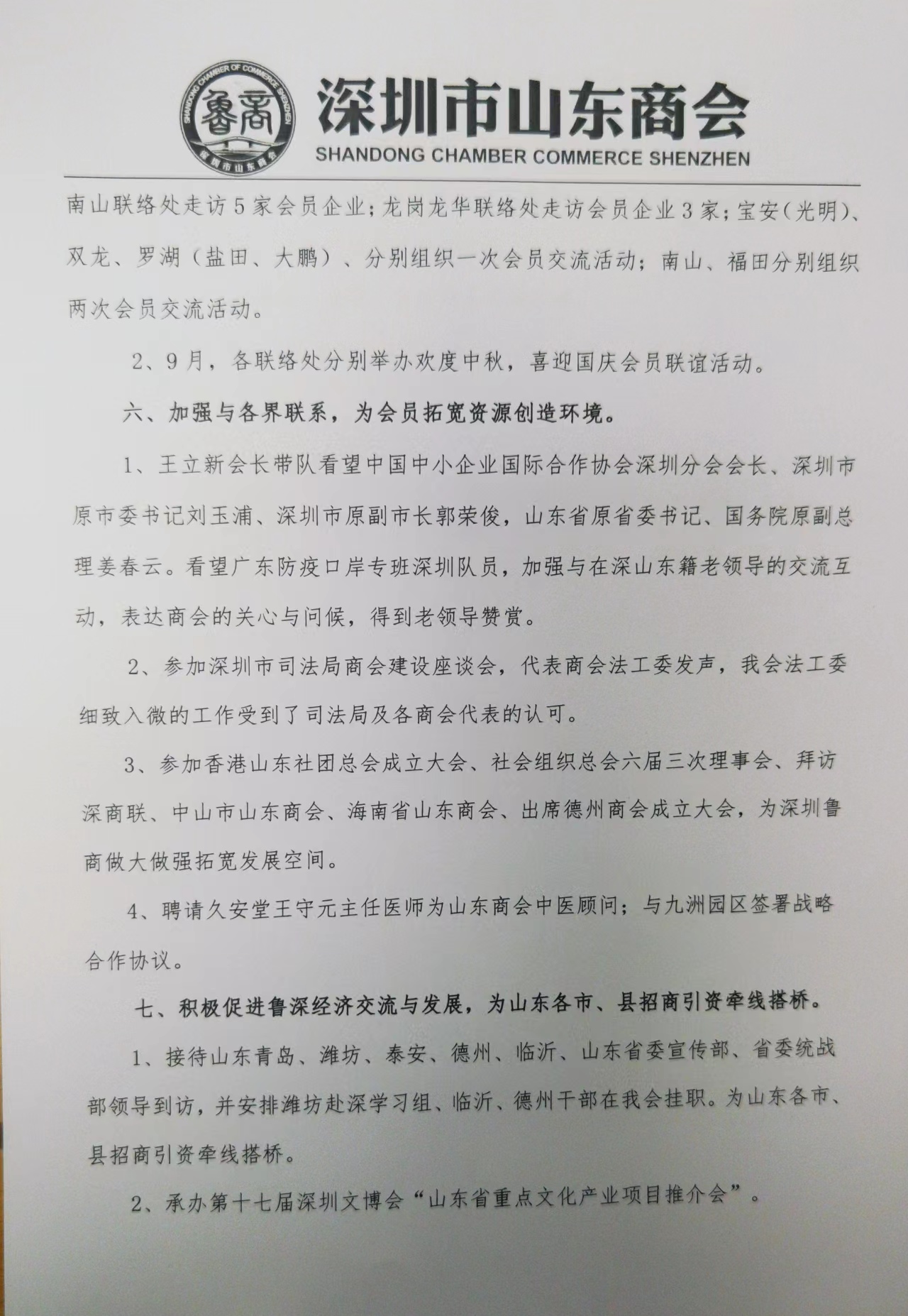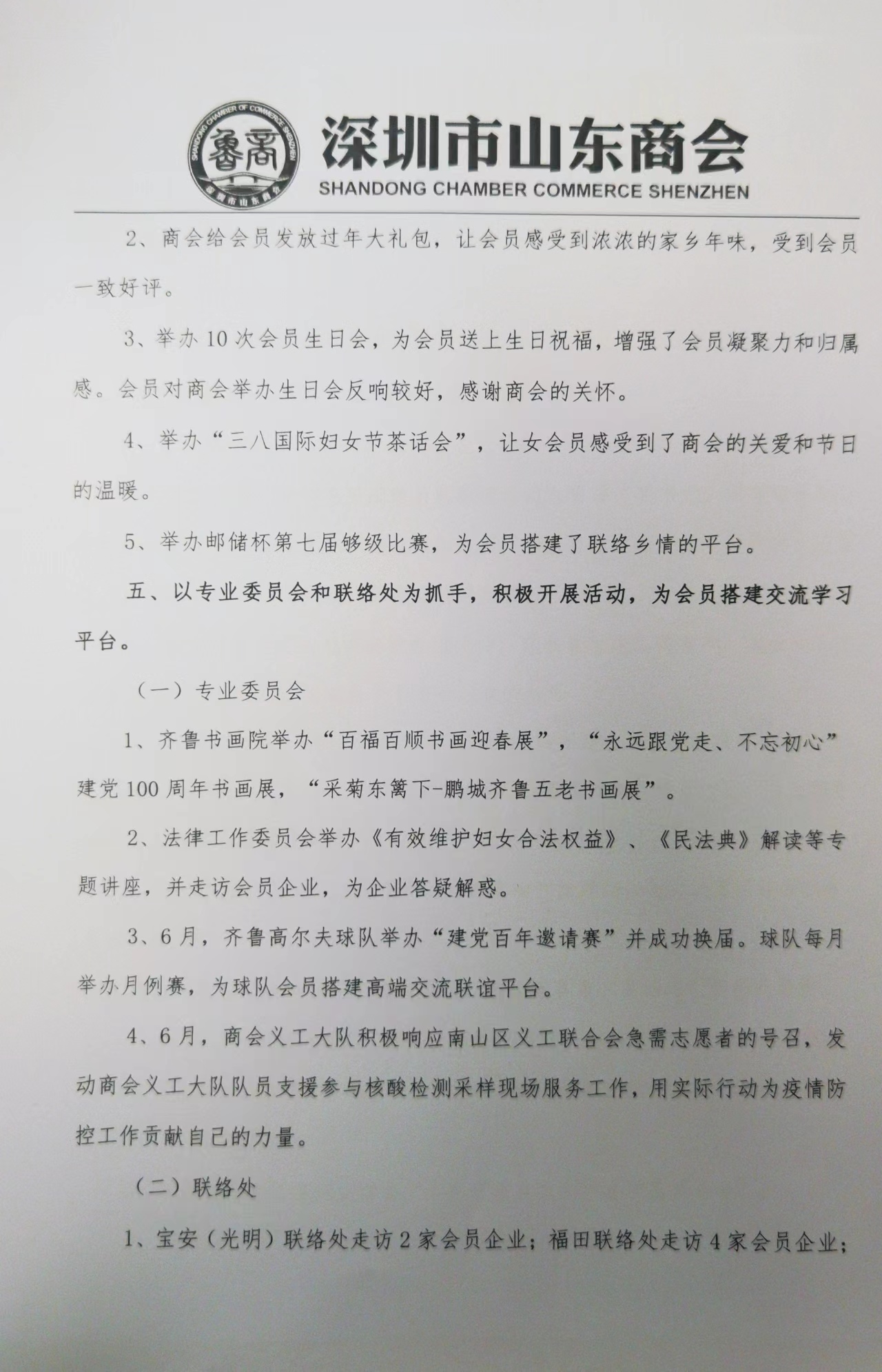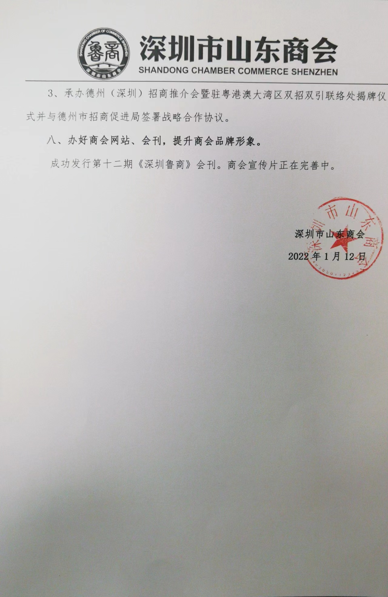 深圳市山東商會2021年度工作報告