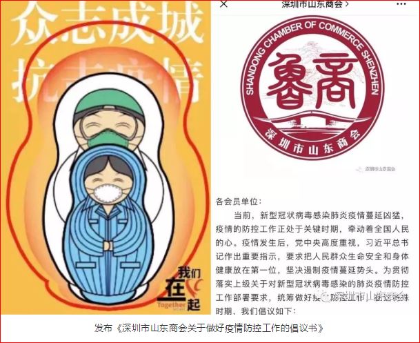 疫情當前,深圳市山東商會和商會黨委積極響應黨和國家號召,按照市委市政府關(guān)于疫情防控的工作指示,始終關(guān)注疫情實時動態(tài),動員、監(jiān)督會員企業(yè)做好疫情防控工作。在山東省工商聯(lián)的倡議下,1月27日起,商會相繼發(fā)布《深圳市山東商會關(guān)于做好疫情防控工作的倡議書》、《深圳市山東商會關(guān)于征集抗疫先進事跡的通知》等文件,在商會公眾號、會員交流群緊急倡議所有會員單位,提高政治站位,強化責任擔當,眾志成城,共克時艱,堅決打贏這場疫情防控戰(zhàn)。