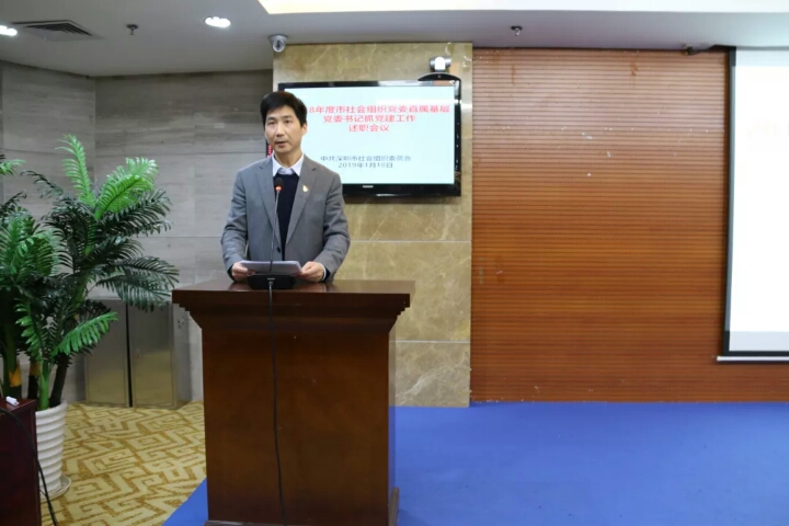 2019年1月18日下午,深圳市社會組織黨委舉行直屬黨委書記抓基層黨建工作述職會。市兩新組織黨工委副書記、市社會組織黨委書記、社會組織管理局局長凌沖同志,市社會組織黨委委員、紀(jì)委委員,市委組織部派駐十八類行業(yè)協(xié)會黨委第一書記,各直屬黨委書記及相關(guān)負(fù)責(zé)人等100多人參加會議。市社會組織黨委副書記、紀(jì)委書記肖衛(wèi)國同志主持會議。深圳市山東商會黨委作為13家現(xiàn)場發(fā)言述職單位參會。