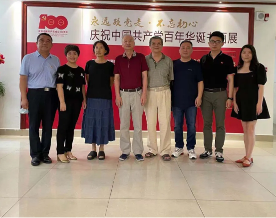 中國共產(chǎn)黨成立100周年前夕,為迎接黨的百年華誕。6月30日上午,由深圳市山東商會黨委、深圳市齊魯書畫院主辦的“永遠(yuǎn)跟黨走·不忘初心”慶祝中國共產(chǎn)黨百年華誕書畫展在東華園5棟三樓成功開展。深圳市山東商會黨委書記、創(chuàng)會會長王維星,商會黨委副書記、會長王立新,商會黨委副書記、執(zhí)行會長張煥祥,商會黨委成員、監(jiān)事長梁尚迎,商會黨委成員、執(zhí)行會長臧延懷,商會黨委成員、顧問畢永濤,商會黨委成員、顧問郭林槐,商會黨委成員、副會長張永軍,商會執(zhí)行會長兼秘書長梁慶偉,商會執(zhí)行會長楊利,商會副會長郭紅菊,商會黨委紀(jì)委書記張書航,商會黨委辦公室主任張含增等參觀了畫展。深圳市山東商會黨委直屬一支部書記、執(zhí)行秘書長陳振永,商會直屬二支部書記徐麗,伯柔服裝支部書記楊少軍,銀儲投資支部書記陳萍,深平一支部書記王維剛,深平二支部書記侯紀(jì)偉,深圳市菏澤商會支部書記孫永彬,深圳市山東濰坊商會支部書記扈炳燕,深圳市山東德州商會支部書記王德強(qiáng)等積極組織黨員同志參觀展出作品。使黨員同志們深切感受到這是一次非常有意義的黨史教育和文化藝術(shù)學(xué)習(xí)實(shí)踐活動。