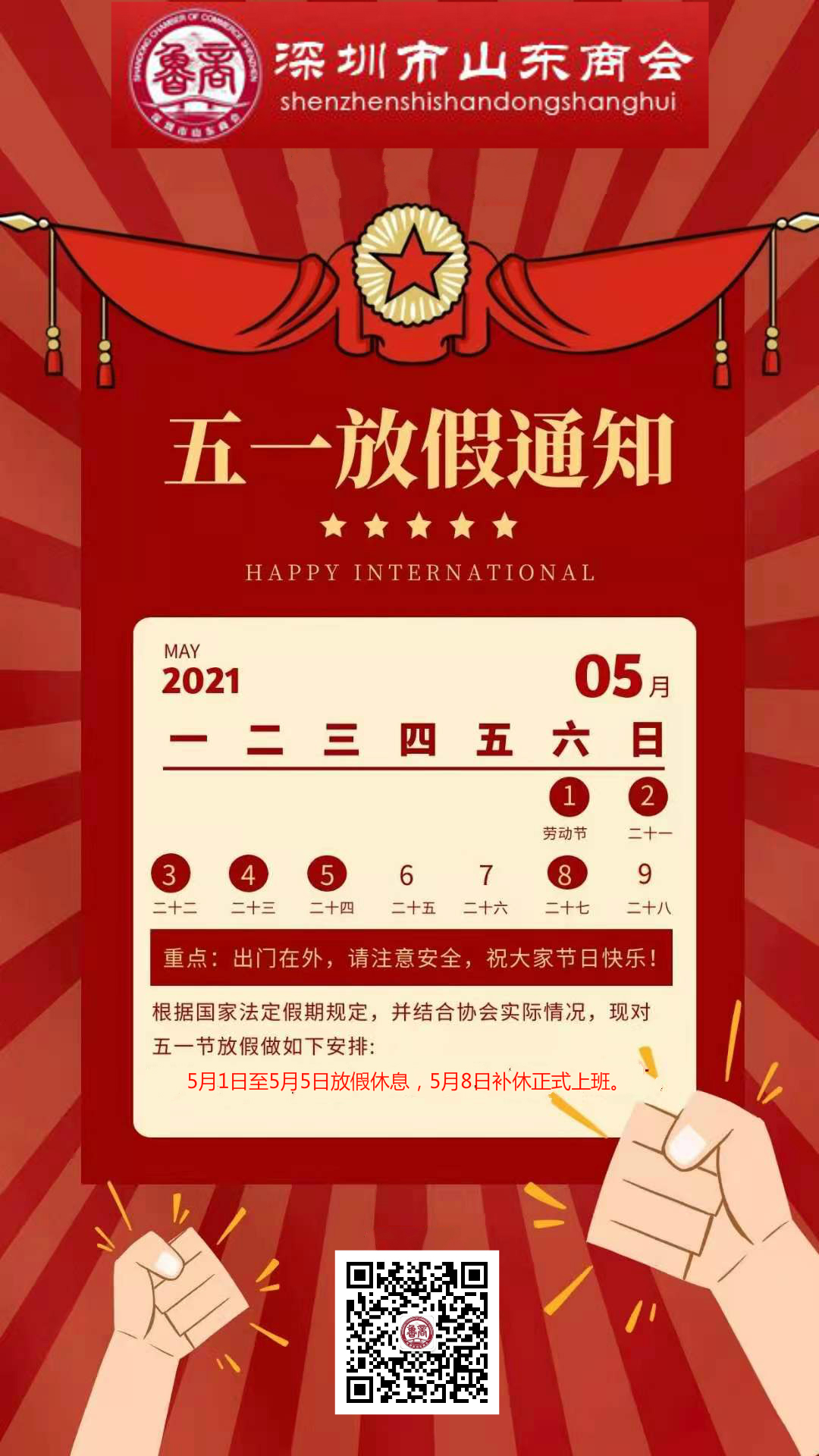 深圳市山東商會(huì)秘書處五一勞動(dòng)節(jié)放假通知