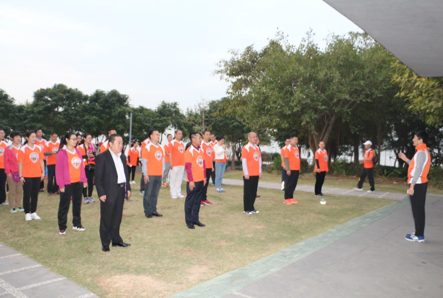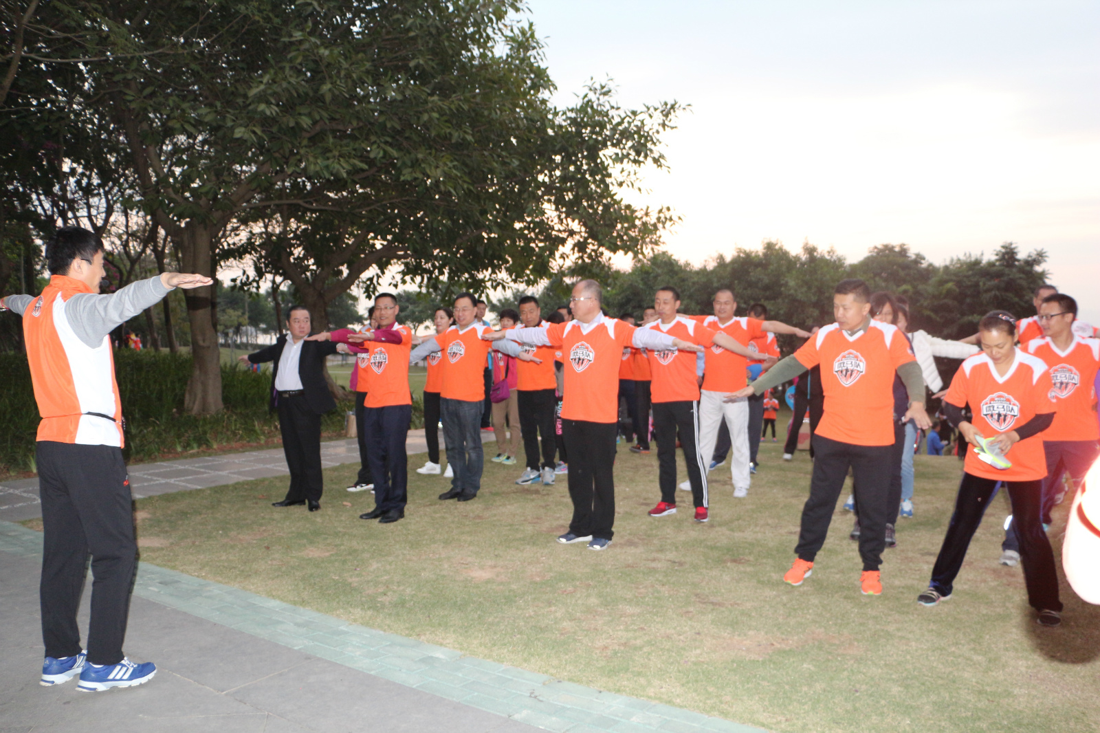 微馬協(xié)會文峰總隊長帶領(lǐng)大家做跑步前準備