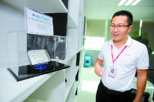 萬拓公司生產(chǎn)線上,技術(shù)人員進(jìn)行安全把關(guān)。