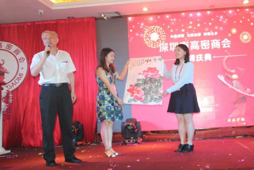 我會會長王立新先生代表商會上臺致辭。他在致辭中說高密物華天寶,人杰地靈。是三賢故里,四寶之鄉(xiāng),大禹在此封國,莫言在此成名。深圳市高密商會的成立使在深的高密人有了聯(lián)系鄉(xiāng)情,交融友情,實現(xiàn)資源共享、互利合作的平臺。深圳市山東商會作為深圳市高密商會在深的兄弟商會,愿和貴商會攜手并進,為在深山東老鄉(xiāng)服好務(wù),為魯深兩地架起一座溝通交流、合作發(fā)展的橋梁,為實現(xiàn)“深圳魯商”的騰飛共獻力量。同時王立新會長代表山東商會贈送深圳市高密商會《見賢思齊》字一幅,為揭牌儀式暨就職典禮增添光彩。