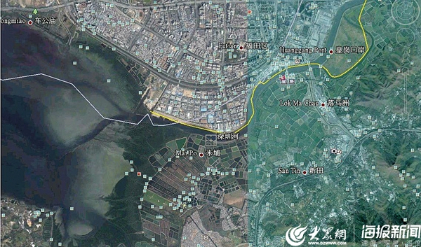 從太空俯瞰深圳河的入海口。從衛(wèi)星圖上看,深圳河和巴黎的塞納河,英國的泰晤士河寬度、流向基本相同,身臨其境卻大相徑庭。摘自南兆旭著《深圳自然筆記》