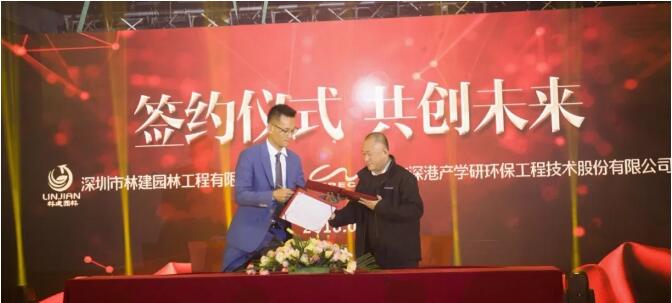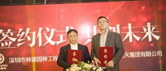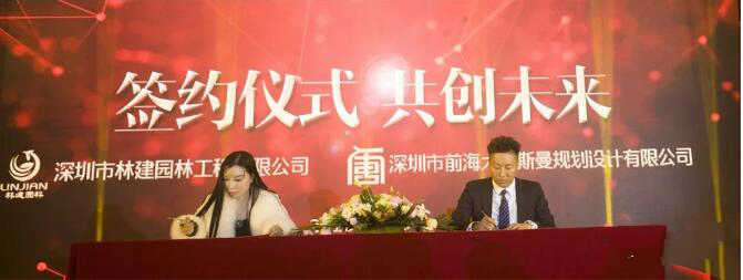 晚會上,在領(lǐng)導(dǎo)的見證和關(guān)注下,林建園林與中國恒天集團,深港環(huán)保,大唐斯曼設(shè)計規(guī)劃等簽訂了戰(zhàn)略合作協(xié)議。深圳市領(lǐng)導(dǎo)送林建園林書法作品一幅表示祝賀。