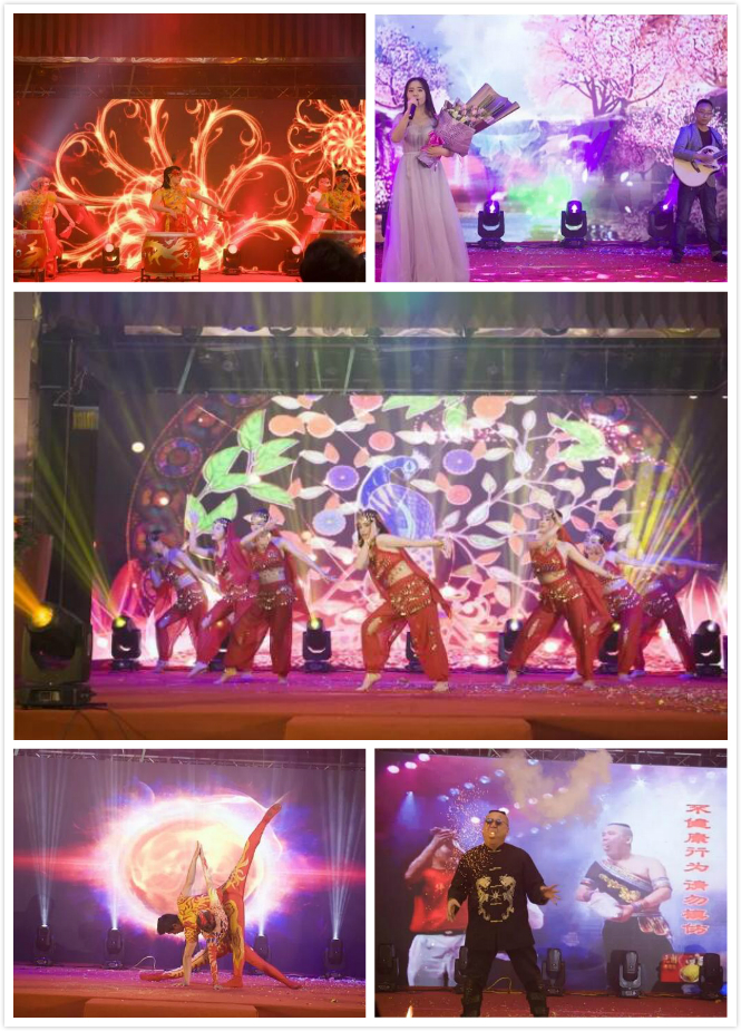 同時現(xiàn)場還設(shè)置了豐富的物品及現(xiàn)金獎項,連同精彩的節(jié)目表演(美麗姑娘的《快樂的跳吧》,雜技達人 表演噴火,雜技《力量》,林建好聲音《再見只是陌生人》,《甄嬛歪傳》,獨唱《藍(lán)蓮花》,能歌善舞的豬八戒,財神爺《發(fā)紅包》)一起將晚會推向了一場場高潮。