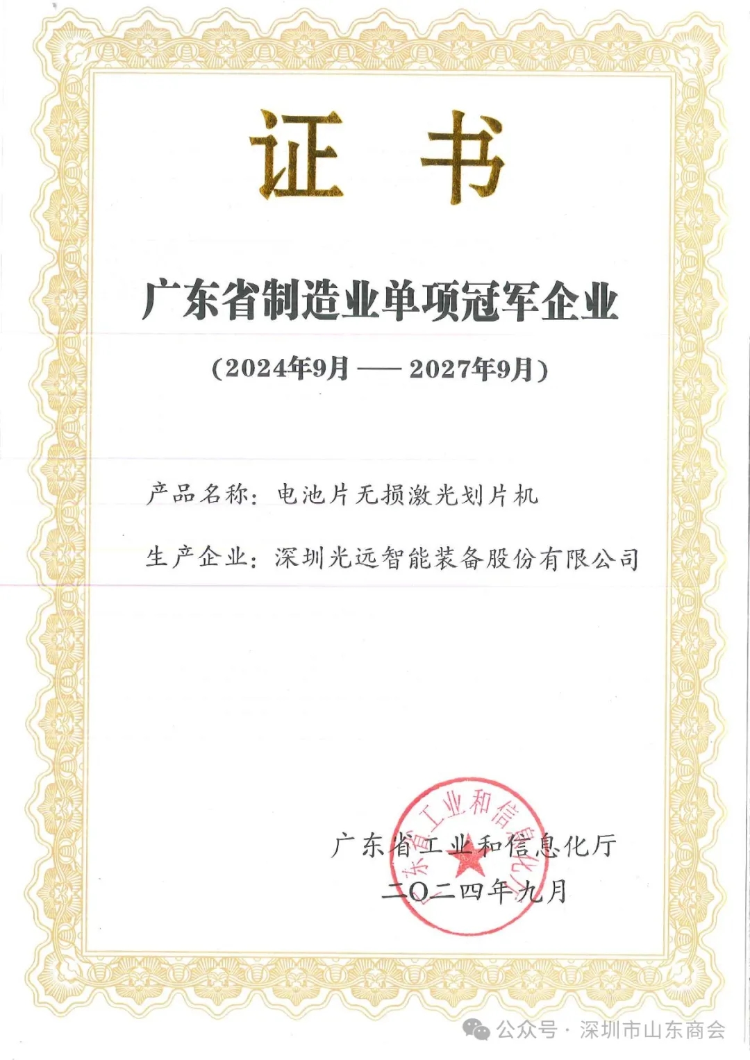【會(huì)企動(dòng)態(tài)】喜報(bào)!祝賀我會(huì)理事單位深圳光遠(yuǎn)智能裝備股份有限公司榮獲廣東省制造業(yè)單項(xiàng)冠軍企業(yè)