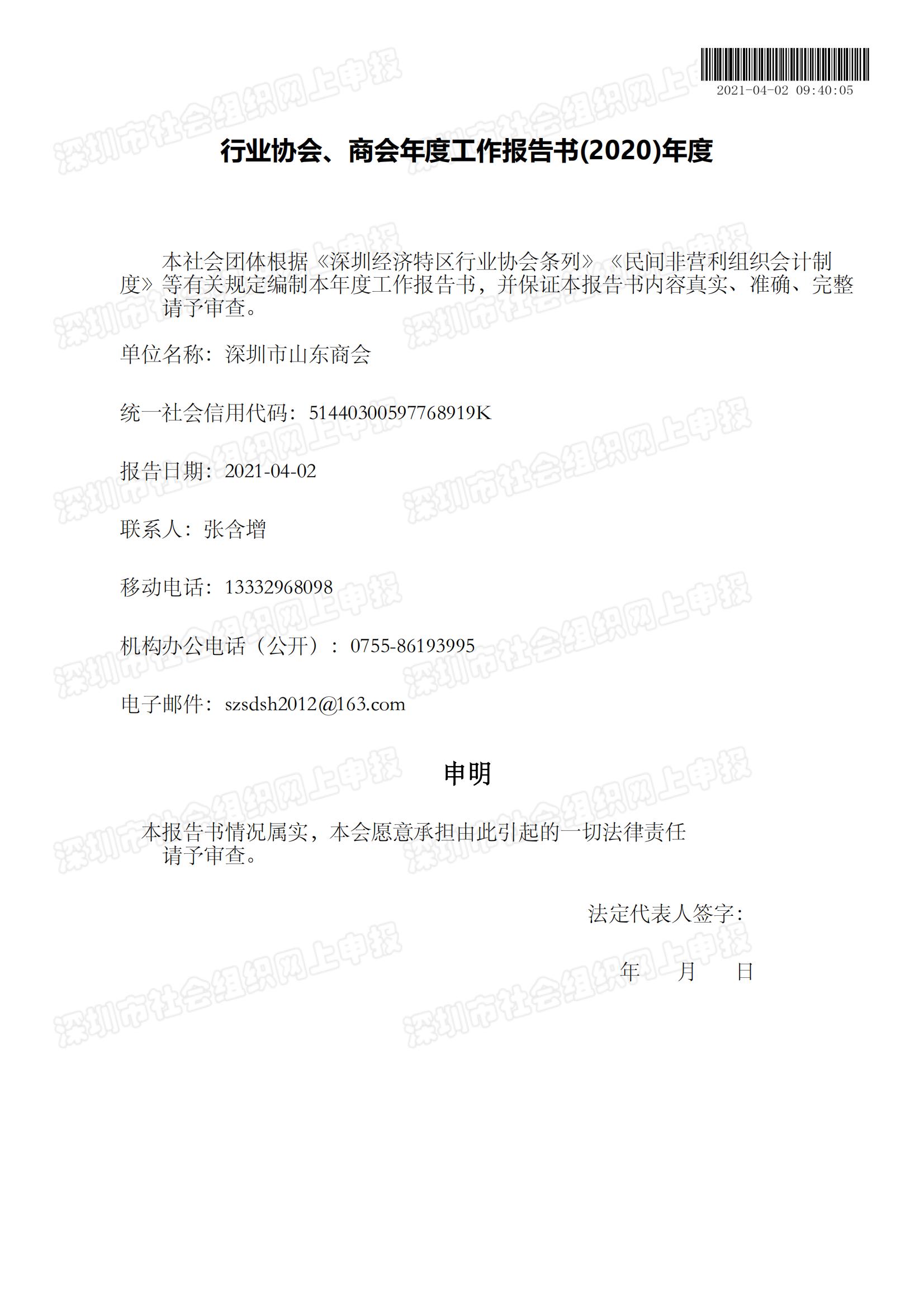 深圳市山東商會(huì)完成2020年度社會(huì)組織年報(bào)。