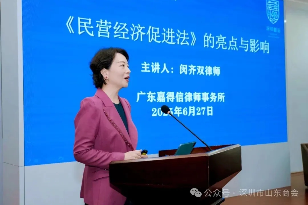 發(fā)布儀式上,與會嘉賓聽取了由律師代表閔齊雙所作的普法講座。閔齊雙以《<民營經(jīng)濟促進法>的亮點與影響》為主題,從《民營經(jīng)濟促進法》的立法背景、立法亮點、實施影響等方面,為企業(yè)解析國家在立法層面對民營經(jīng)濟的保護扶持,并結(jié)合典型案例詳細講解企業(yè)合規(guī)經(jīng)營要點。在互動交流環(huán)節(jié),南山法院法官針對企業(yè)代表提出的股權(quán)糾紛、財產(chǎn)保全、商業(yè)秘密等問題“一對一”解疑答惑。