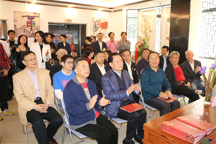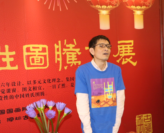 姓氏乃人之根本,作為標(biāo)志家族系統(tǒng)的符號(hào),實(shí)乃祖先之魂也。2018年3月2日,由中國(guó)國(guó)畫院嶺南分院主辦,深圳古營(yíng)軒承辦的,由山東大學(xué)劉樂(lè)一教授帶領(lǐng)的研究生團(tuán)隊(duì)歷經(jīng)六年時(shí)間整理設(shè)計(jì),以多元文化理念,集國(guó)學(xué)精粹大集的最具權(quán)威、最具藝術(shù)觀賞性的“中國(guó)百家姓?qǐng)D騰首展”于元宵佳節(jié)在深圳舉辦。我會(huì)黨委書記、創(chuàng)會(huì)會(huì)長(zhǎng)、中國(guó)國(guó)畫院嶺南分院院長(zhǎng)、深圳市齊魯書畫院院長(zhǎng)王維星先生,中國(guó)百家姓?qǐng)D騰創(chuàng)始人、山東大學(xué)美術(shù)學(xué)研究生導(dǎo)師、亞太國(guó)際多元文化協(xié)會(huì)副會(huì)長(zhǎng)劉樂(lè)一教授,世界劉氏宗親會(huì)副會(huì)長(zhǎng)、星銀醫(yī)藥集團(tuán)董事長(zhǎng)劉庭福先生,深圳知名收藏家顏家亮先生,香港畫院院長(zhǎng)、嶺南畫派傳承人周恒先生,伽佰俐國(guó)際總經(jīng)理劉彬女士,山東大眾報(bào)業(yè)集團(tuán)董事長(zhǎng)高金華先生,我會(huì)黨委紀(jì)委書記、深圳市齊魯書畫院常務(wù)副院長(zhǎng)兼秘書長(zhǎng)張書航先生,我會(huì)常務(wù)副會(huì)長(zhǎng)兼秘書長(zhǎng)王維先生,深圳市翰墨重彩院院長(zhǎng)趙巨耀先生,深圳市武術(shù)研究會(huì)秘書長(zhǎng)陳雁楊先生,深圳市企業(yè)家書畫院院長(zhǎng)翟先立先生,深圳市山東商會(huì)常務(wù)副會(huì)長(zhǎng)郭林槐先生、臧延懷先生,副會(huì)長(zhǎng)楊利先生,王傳啟先生,張捷先生,賈朕先生,我會(huì)執(zhí)行秘書長(zhǎng)兼辦公室主任陳振永先生,中國(guó)國(guó)畫院嶺南分院秘書長(zhǎng)張延偉先生,東華物業(yè)董事長(zhǎng)鄭懷軍先生,東華假日酒店副董事長(zhǎng)王志東先生,嘉悅酒店總經(jīng)理李江長(zhǎng)先生出席畫展。畫展由油畫家張怡心女士主持。