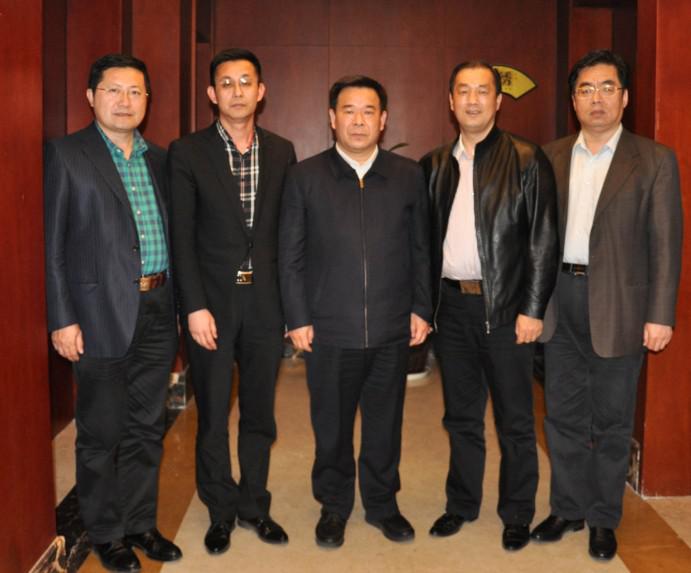 劉曙光市長(中)、政協(xié)副主席兼經(jīng)信委主任李傳恒(右一)與秘書長伍柳江、副秘書長曲向東、常務(wù)理事扈洪升合影留念