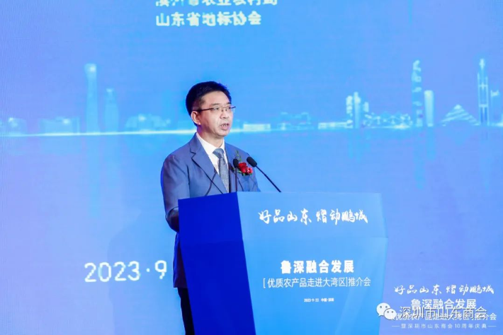 為全面貫徹山東省政府高質(zhì)量發(fā)展理念,搶抓發(fā)展機(jī)遇,促使更多的“好品山東”優(yōu)質(zhì)產(chǎn)品走進(jìn)大灣區(qū),9月22日,由山東省總商會(huì)、山東省農(nóng)業(yè)農(nóng)村廳、濱州市人民政府主辦,深圳市山東商會(huì)、深圳東華集團(tuán)、濱州市農(nóng)業(yè)農(nóng)村局、山東省地理標(biāo)志產(chǎn)業(yè)協(xié)會(huì)聯(lián)合承辦,山東省人民政府駐廣州辦事處、博興縣人民政府、恒豐銀行股份有限公司深圳分行、山東百脈泉酒業(yè)股份有限公司等給予大力支持的“好品山東·熠動(dòng)鵬城”——魯深融合發(fā)展【優(yōu)質(zhì)農(nóng)產(chǎn)品走進(jìn)大灣區(qū)】推介會(huì)在深圳五洲賓館成功舉行。