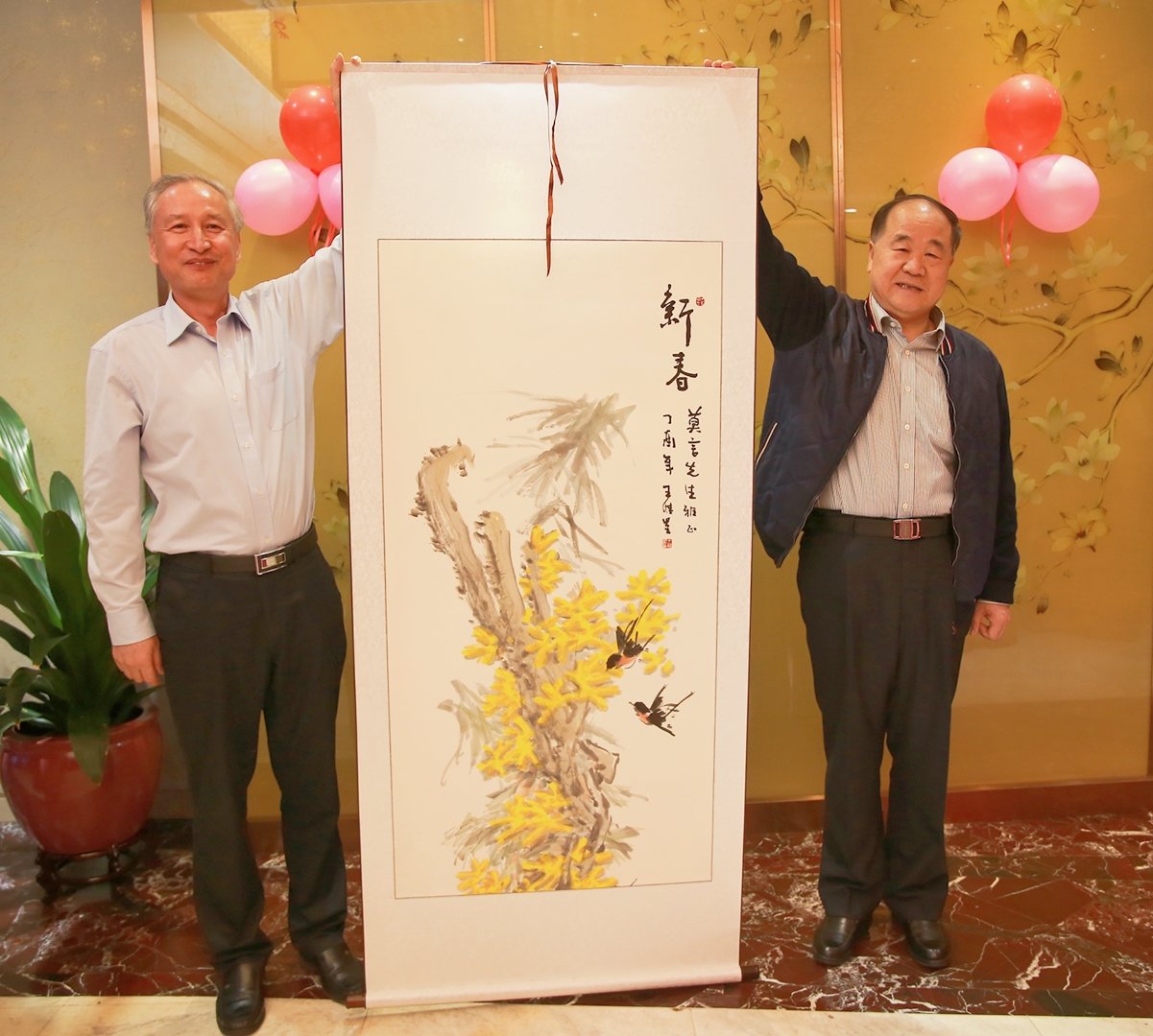 創(chuàng)會(huì)會(huì)長(zhǎng)王維星先生給莫言先生贈(zèng)畫(huà)