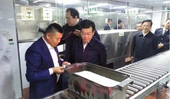 黃敏副市長及政府領(lǐng)導(dǎo)對鑫輝餐飲的發(fā)展所取得的成績給予充分的肯定,鑫輝餐飲是一家集食品食材配送、中西式快餐連鎖經(jīng)營、大型餐廳經(jīng)營管理等綜合型餐飲企業(yè),為南山區(qū)科技園沒有食堂配套的企業(yè)提供配餐服務(wù),是南山區(qū)民生實事項目——“粵海大飯?zhí)谩钡慕ㄔO(shè)主體之一;我會副會長、鑫輝餐飲董事長王傳啟陪同黃敏副市長及政府領(lǐng)導(dǎo)先后檢查了公司的食品儲藏間、廚房加工經(jīng)營場所、食品配送車、自動化蔬菜切配清洗線等,就公司“透明廚房,良心飯菜”經(jīng)營理念、中央廚房配送、食品安全管控、蔬菜基地建設(shè)等方面進行重點匯報。檢查過程中,黃敏副市長詳細(xì)詢問了經(jīng)營者食品制作的過程、供餐保障等情況。為了解食品的味道是否讓市民滿意,他還深入到米飯制作車間,詳細(xì)詢問了食材制作的時間、制作設(shè)備的來源、成品的儲存運輸?shù)葐栴},并檢查了現(xiàn)場的食品安全狀況。