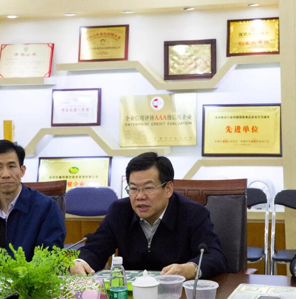 12月25日下午,深圳市人民政府黃敏副市長、張紀(jì)青副秘書長一行深入我會副會長單位深圳南山鑫輝餐飲服務(wù)管理有限公司調(diào)研餐飲配送食品安全工作。南山區(qū)政府謝炳文副區(qū)長,市市場和質(zhì)量監(jiān)管委郭馳副主任,市市場監(jiān)管局夏昆山副局長,市食藥監(jiān)局李忠副局長陪同調(diào)研。市標(biāo)準(zhǔn)院、粵海街道辦、市食藥監(jiān)局食藥綜合處、餐飲處、南山局等單位主要負(fù)責(zé)同志參加活動。